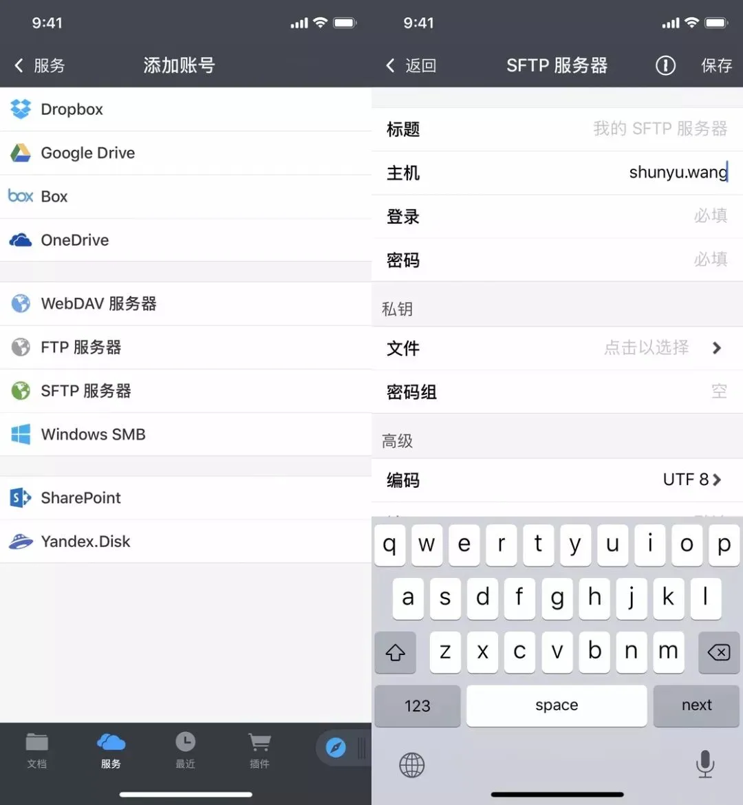 除了访问本地和 iCloud 云盘中的文件外,Documents 还支持添加多种第三方服务,包括 Dropbox、Google Drive、OneDrive 等主流网盘及 WebDAV、FTP、SFTP 等传输协议,让你在一个 App 内统筹所有文件相关事宜。