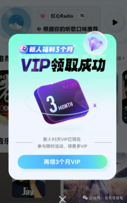 登录即送三个月会员,每天签到即可一直免费。