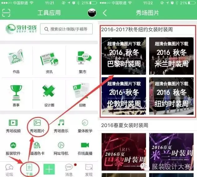 APP内置男装、女装、童装、流行趋势、时尚买手、陈列视觉、高级定制等100多个交流细分板块。