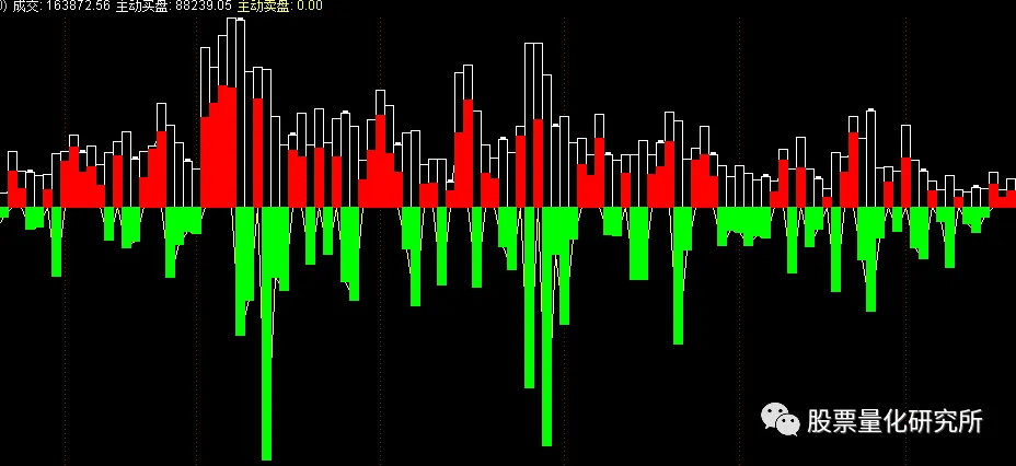 主动卖盘:IF(CLOSE<OPEN,0-VAR1*((HIGH-CLOSE)+(OPEN-LOW)),0);