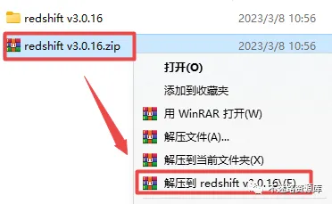1.选中下载的压缩包,然后鼠标右键选择解压到“redshift v3.0.16”(没有解压选项点这里)