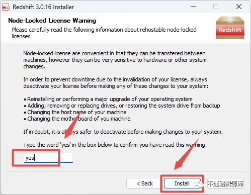 7.在下面的框中输入单词“yes”,以确认您已阅读此内容,点击“Install”