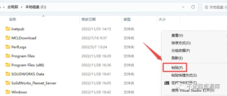 12.打开桌面“此电脑”(Win7的计算机),打开C盘根目录,粘贴刚刚复制的文件