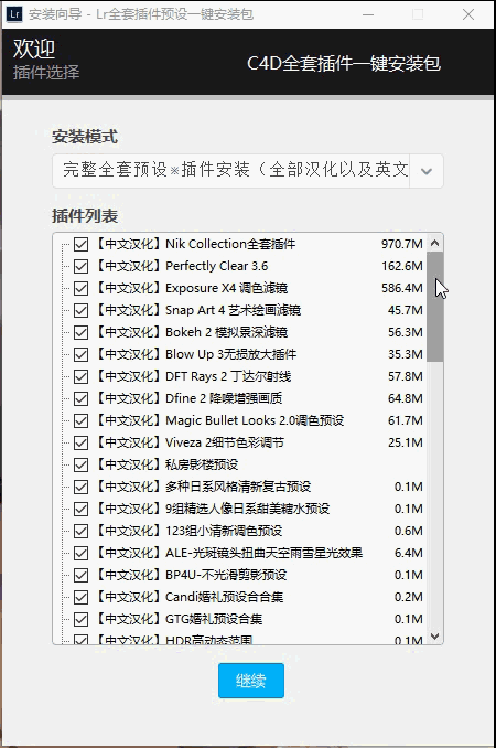 LR插件一键安装包是一款功能强大的LR插件安装工具,LR是设计师日常工作中必不可少的制作软件,基本包含了所有的常用的LR插件,兼容支持Win系统2015以上版本,基本是全汉化,可以选择安装所需插件,安装都是自动,能够自动识别LR软件版本和安装位置,安装后可直接使用,全新清爽的界面,插件动态提醒更新等,非常的方便实用。软件提供的各种常用的插件,涵盖了各种类型,满足用户的各种LR插件安装需求,让LR的使用更加高效。