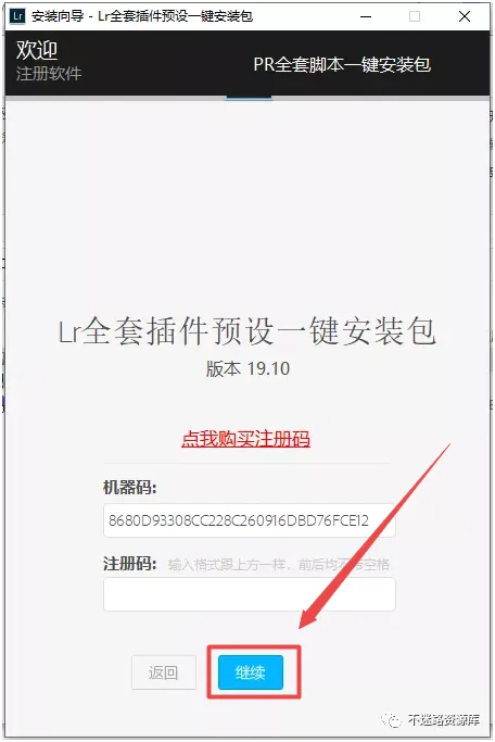 6.无需填写注册码,直接点击“继续”,耐心等待安装完毕