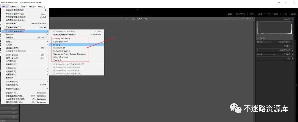 7.双击运行桌面上LR软件,在“照片”窗口即可查看安装的插件