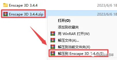 1.选中下载的压缩包,然后鼠标右键选择解压到“Enscape 3D 3.4.4”(没有解压选项点这里)