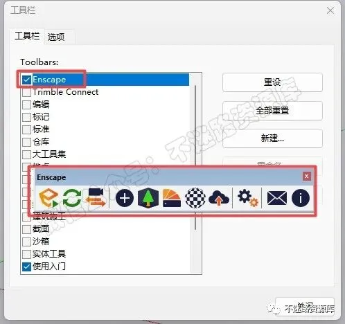13.勾选“Enscape”选项就会出现Enscape工具栏