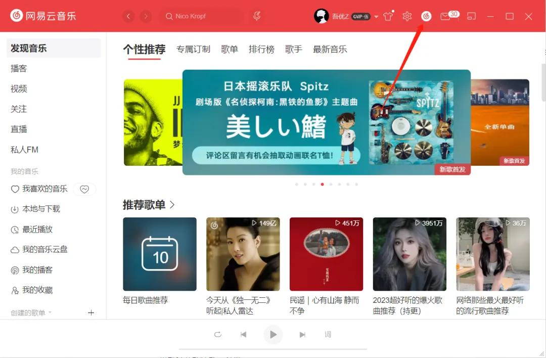 重新打开软件,就会发现网易云右上角多了个小图标!