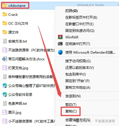 3.返回“Octane2022.1.r8完美解锁版”文件,选中”c4doctane“文件夹,鼠标右键点击“复制”