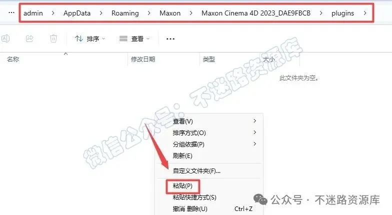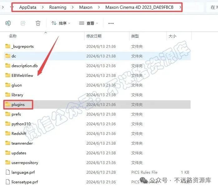 23.在打开的文件夹中,依次打开“Maxon Cinema 4D 2023_XXXXXX—plugins”文件夹(默认路径:C:\Users\[电脑用户名]\AppData\Roaming\Maxon)