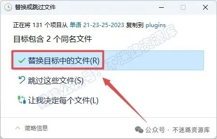25.点击“替换目标中的文件“(若提示需要权限,勾选“为所有…”,点击“继续”)