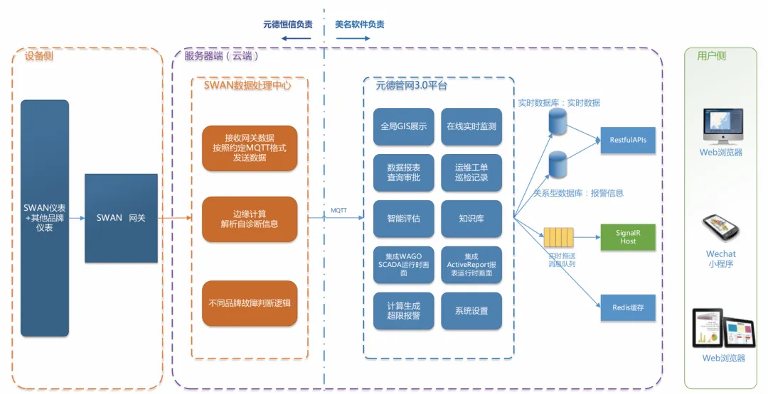 诚然,提高设备正常使用水平、降低运营成本,也是众多水务企业的强烈诉求。多年前,苏州元德恒信就在智慧水务领域开启了前瞻布局,致力于将物联网技术与传统水利进行深度融合。该客户对实时数据的准确性提出了高要求,并期望打造管网整体点位状态监测管理系统,实现报警派单记录管理等功能。