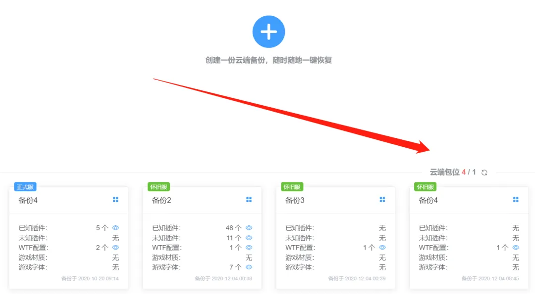 可将”插件/WTF/材质/字体”备份云端,随时随地一键恢复;