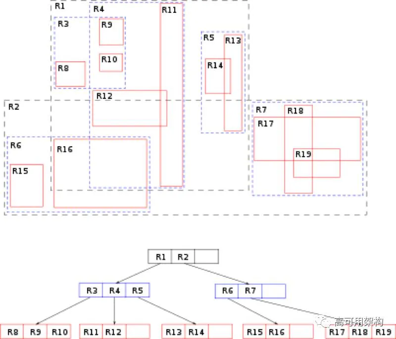KD 树并不适合我们的需要,因为它是不平衡的,只能搜索一个最近的点。 我们可以在 kd-tree 上实现 k-nearest 邻居,但是没必要重造轮子,因为 R-tree 已经解决了这个问题。