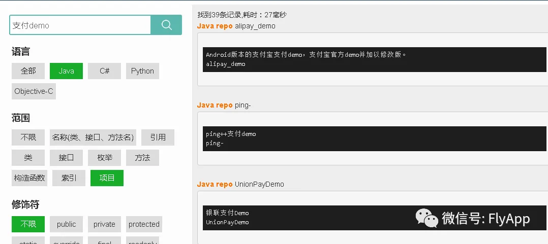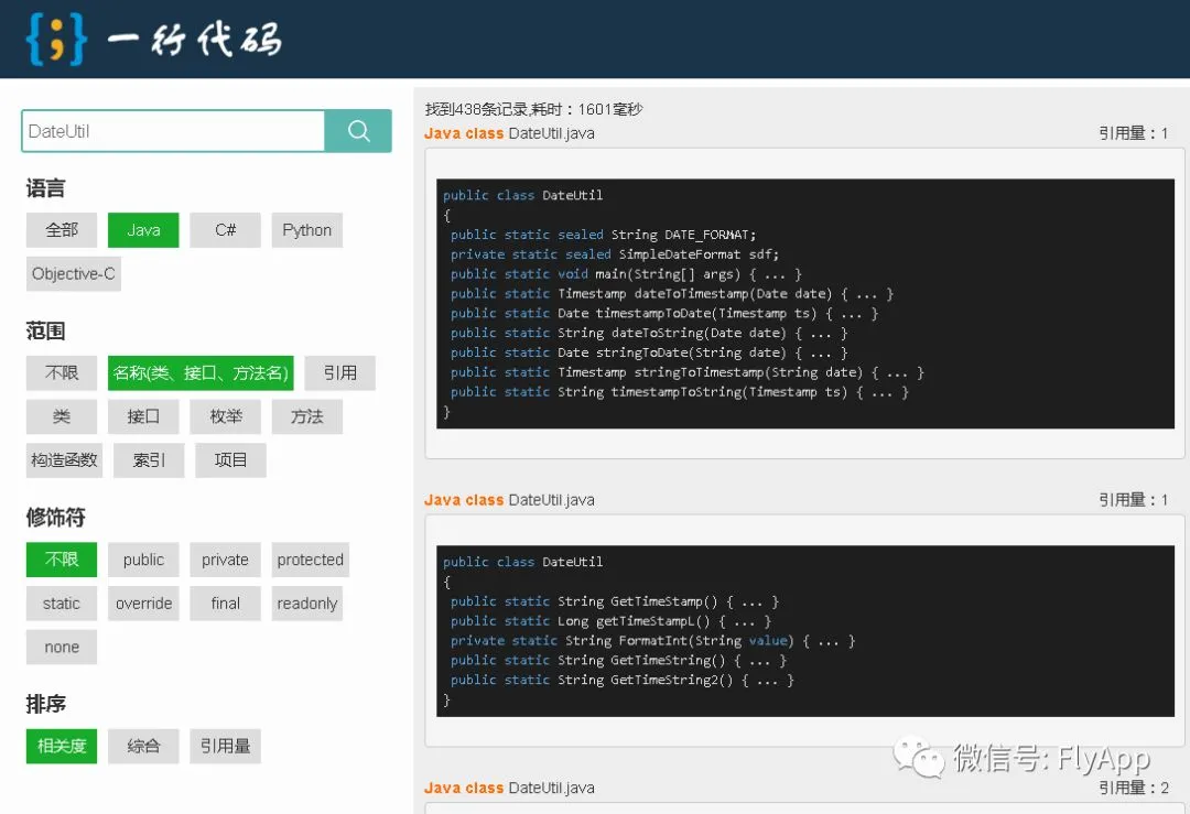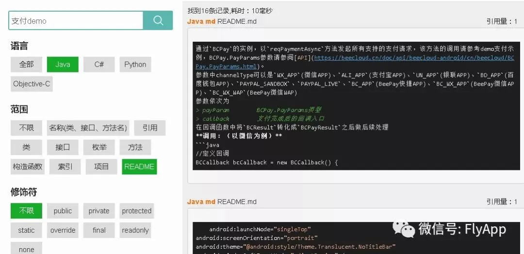 其次是找具体类或方法如何使用,比如第三方库的某个类如何初始化,某个方法如何调用等等。