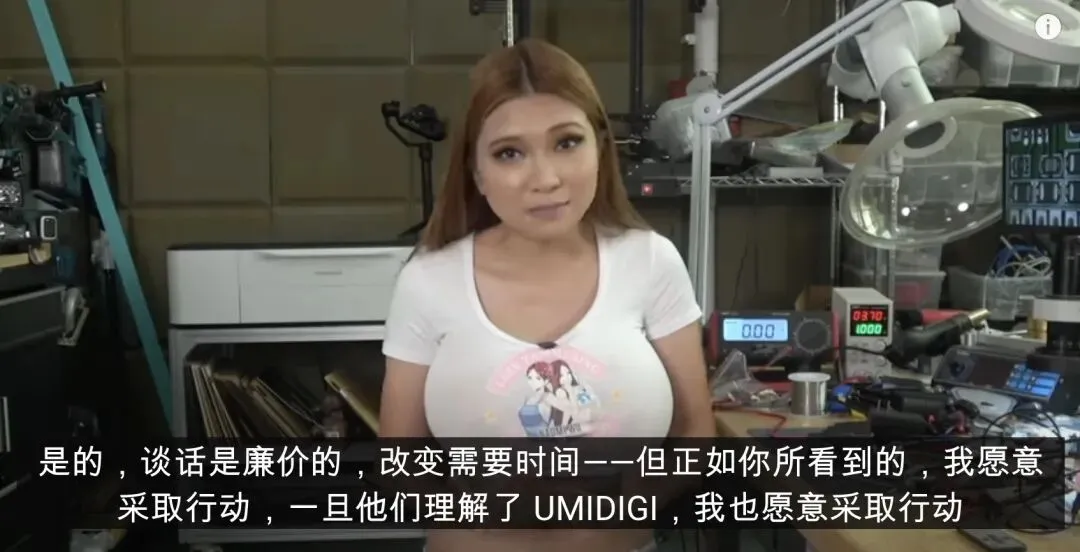 在视频中,Umidigi 另外一位女员工(可能是行政岗)接待了 Naomi Wu。