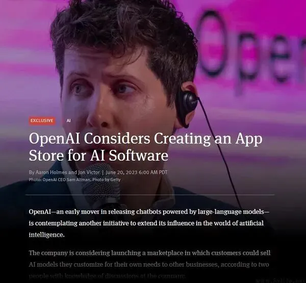 事实上,OpenAI要做一个属于自己的“App Store”,而非将ChatGPT应用寄身于苹果App Store、谷歌Google Play,或者微软Microsoft Store的消息并非空穴来风,Sam Altman此前在一场会议中就曾与部分开发者分享了这一计划。