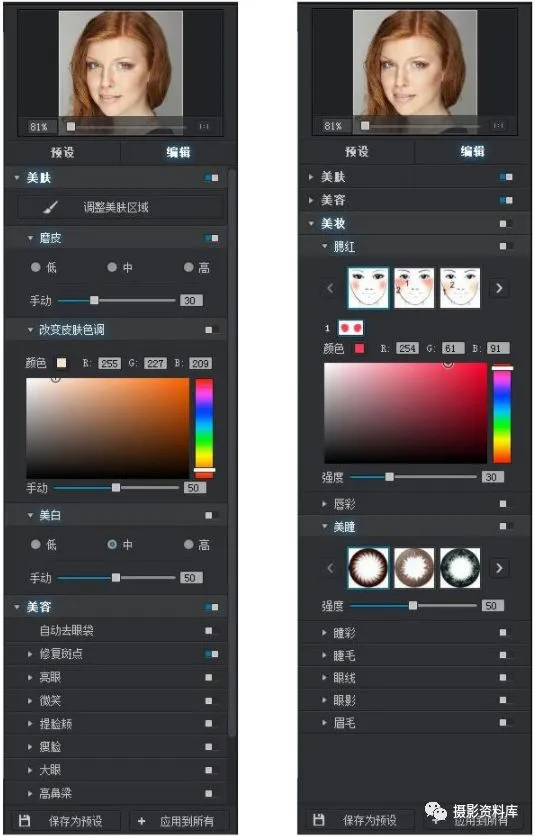根据您的喜好可微调各种参数,打造属于您自己的完美人像照片