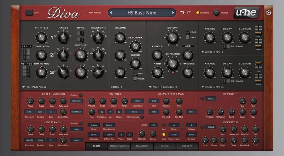 U – he Diva 虽然不是专门的 Juno 模拟插件,但它凭借强大的功能,可以更细节重现 Juno 的声音架构。16 个复音和叠音能力,让它超越了原硬件的限制。能够自由组合不同的模型,创造出独一无二的声音,尽管对 CPU 要求较高,但它的声音效果绝对值得。