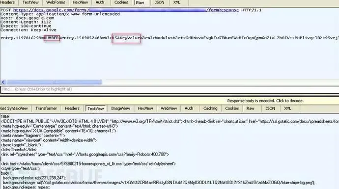 通过Fiddler代理工具,可以查看连接到Google Docs更多的信息,同时分析SSL流量数据。