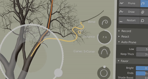 我觉得这个工具可以用“有趣“来形容~通过从树木的任何一点来绘制就可以长出一个新的分支,甚至可以从头画一整棵树。