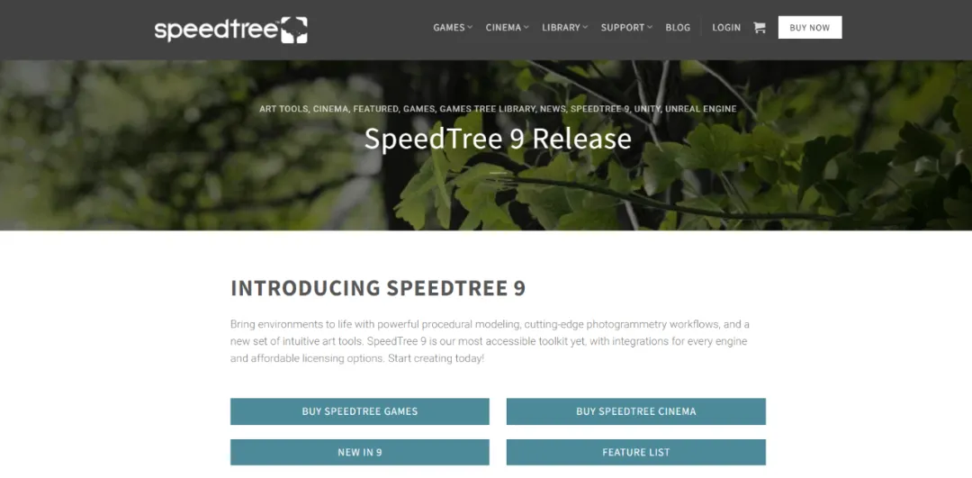 尽管多年来该软件已经发布了几个不同的版本,但目前以SpeedTree Cinema的形式提供,用于视觉效果和特色动画工作,以及SpeedTree Games。