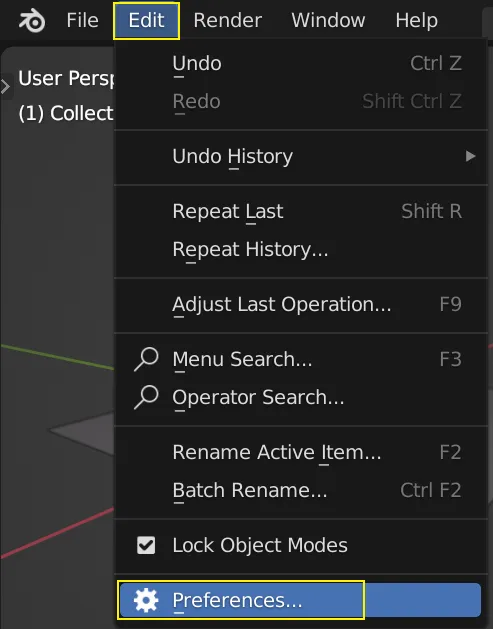 Preferences (偏好设置)是调整 Blender 软件各种默认设置的地方,安装插件、调整快捷键、调整各种喜好设置都在这里面。