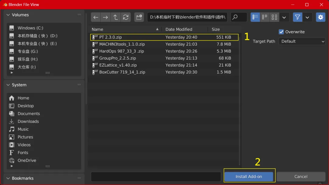 E:\软件\blender 则不建议(路径中有中文字符)。