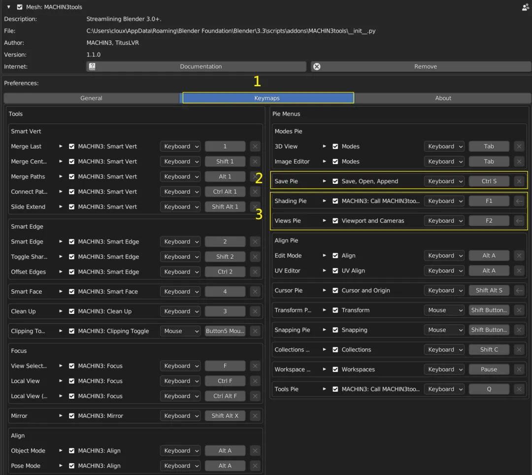 Keymap (视图切换)选项卡(1)是更改快捷键的地方。
