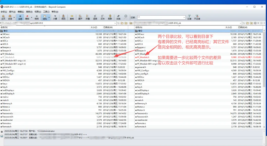 4. 两个文件夹之间的比较。(一般一个工程项目由若干个模块构成,不同模块放在不同的目录/文件中,整个项目的比较需要先比较整个目录,再比较具体的有差异的文件。)