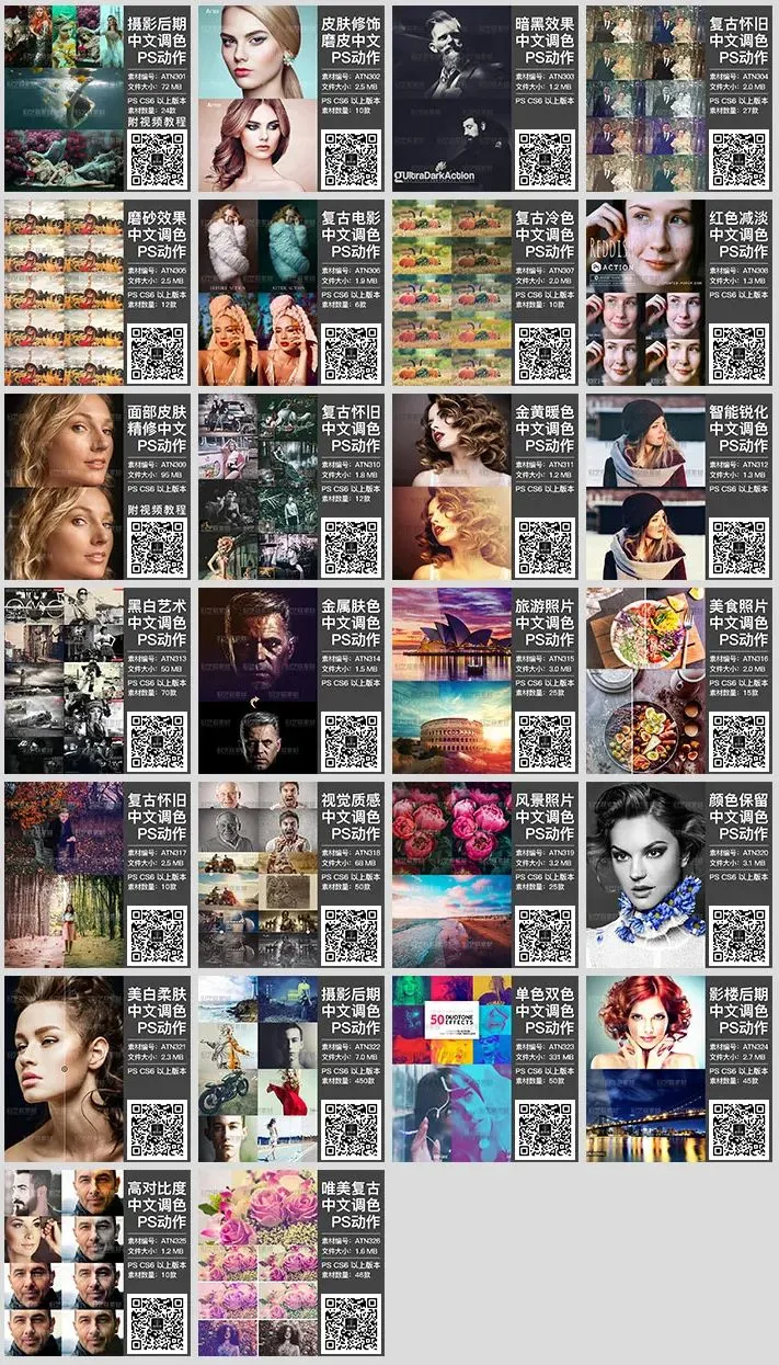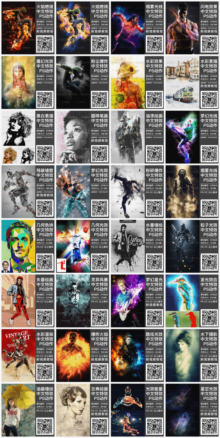 156款PS动作插件神器,你想要效果都有,中文动作,支持WIN&MAC系统,附赠安装和使用教程,小白也能一键生成效果图,限时限量赠送