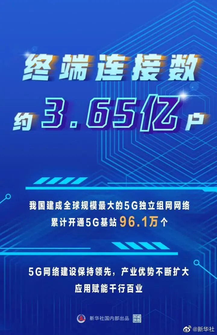 7月16日从国新办召开的发布会上了解到,我国已建成全球规模最大的5G独立组网网络,累计开通5G基站96.1万个,5G终端连接数约3.65亿户。5G网络建设保持领先、产业优势不断扩大、应用赋能千行百业。(新华社)