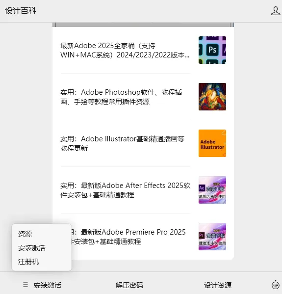 设计百科公众号其它功能说明:软件、字体、插件、教程等内容等你去发现
