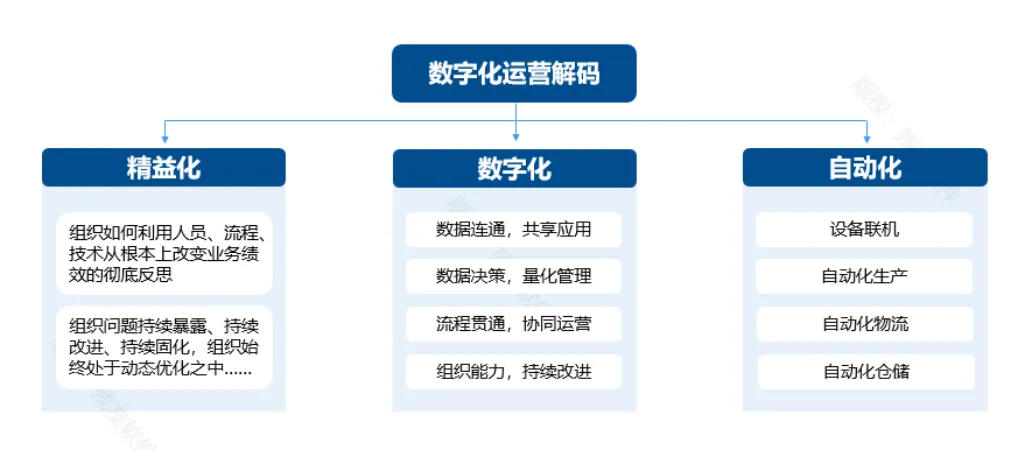 我们对数字化运营做下解码,包括三个核心要素:精益化、数字化、自动化