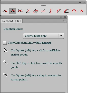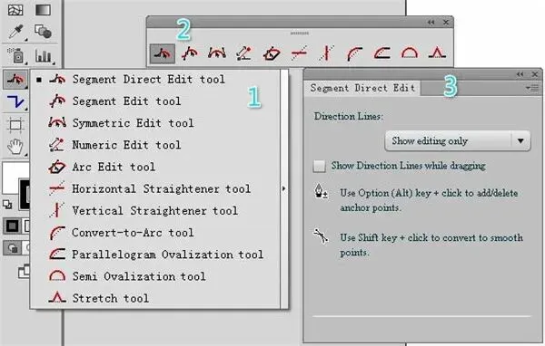 两个工具都支持直接拖拽路径/锚点/手柄,并能通过 SHIFT点击 转换角点为平滑点,通过 ALT点击 增减锚点。它们的关键区别在于:编辑平滑点连接的线段时,“路径直接编辑工具”不影响相邻线段,而“线段编辑工具”会调整相邻线段以保持平滑。理解这点能让你根据需求选用合适的工具。