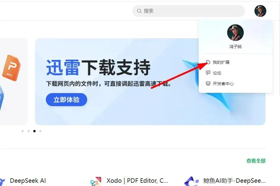 下一步,点我的头像,再点我的扩展