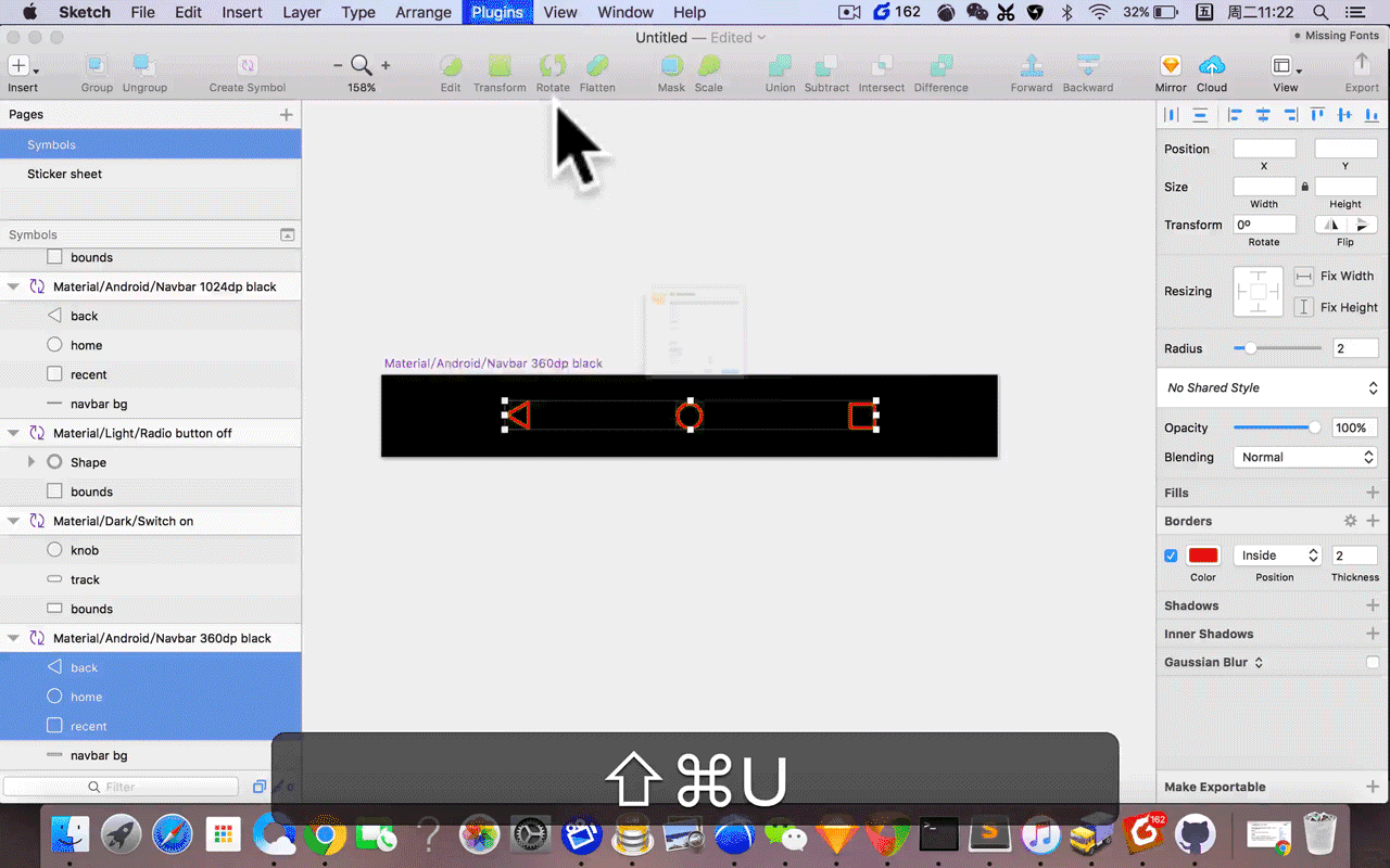 本功能提供常用 icon,并提供搜索功能,让你在使用 Sketch 完成交互稿的过程中不需要再费心去找 icon 了。(静电说:矮油~这个功能好实用诶,喜欢,做UI越来越傻瓜化了,囧)