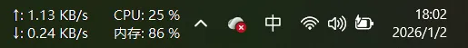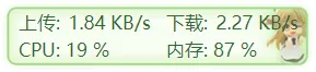 工具打开是一个悬浮窗,显示的有上传和下载的速度,还有CPU和内存的使用情况。(默认显示上传和下载,右键菜单勾选“显示更多信息”会增加CPU和内存)