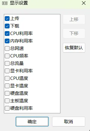 在任务栏显示状态下,可以右键菜单“显示设置”选择显示我们想要的监测信息。