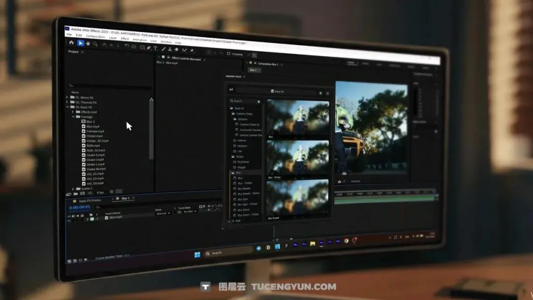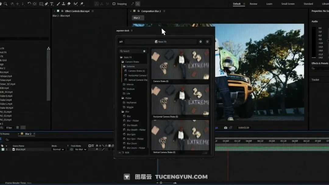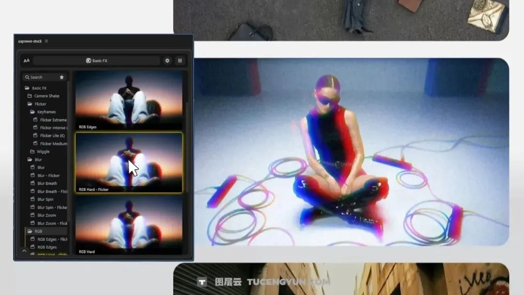 『新品』AE插件:36个一键式剪辑必备相机抖动、闪烁、模糊、鱼眼、发光、RGB视觉效果包(14558)
