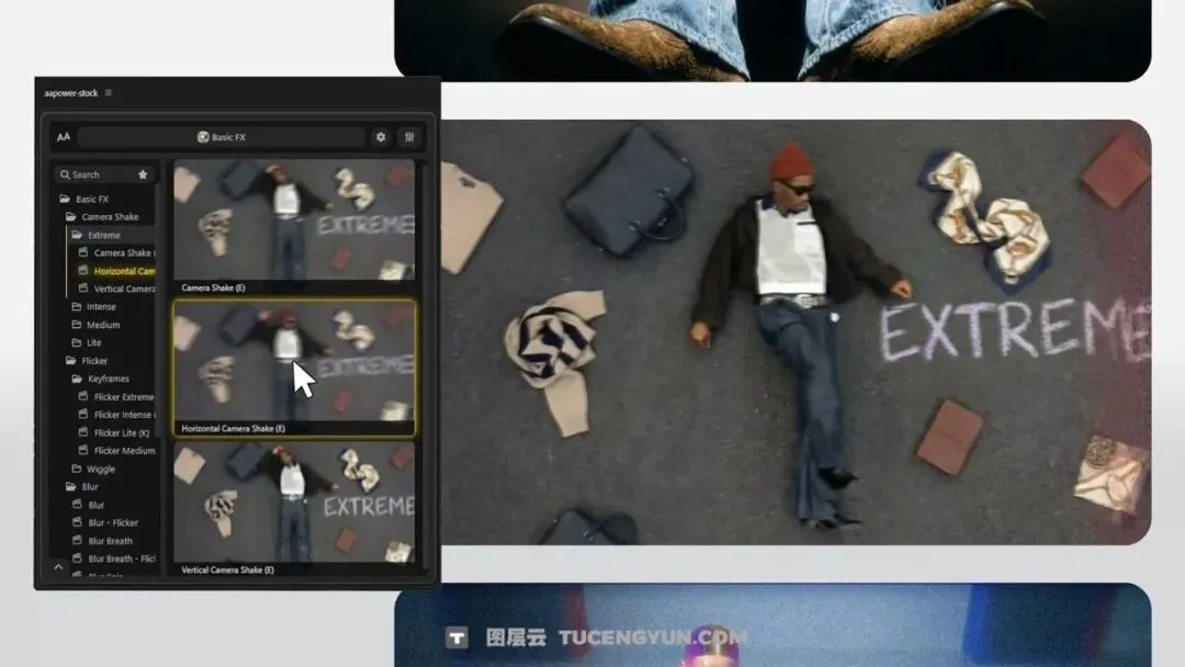摄像机震动预设,有4个强度级别:极端/强烈/中等/轻度(包括水平和垂直变化) -