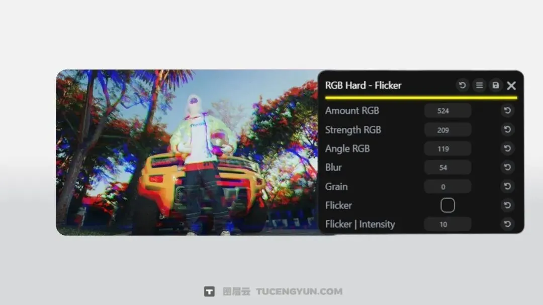 相机抖动 / 闪烁 / 模糊 / 鱼眼 / 发光 / RGB -