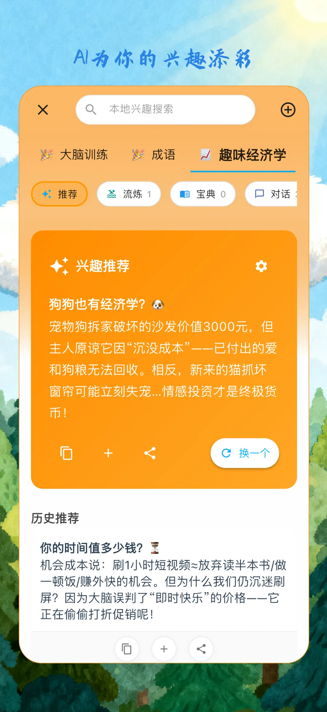 2. 所有形态的对象,都围绕“兴趣”展开,通过为宝典、流炼、对话等加上兴趣标签,让这些对象可以通过“兴趣”视角天然聚合,便于用户的信息梳理