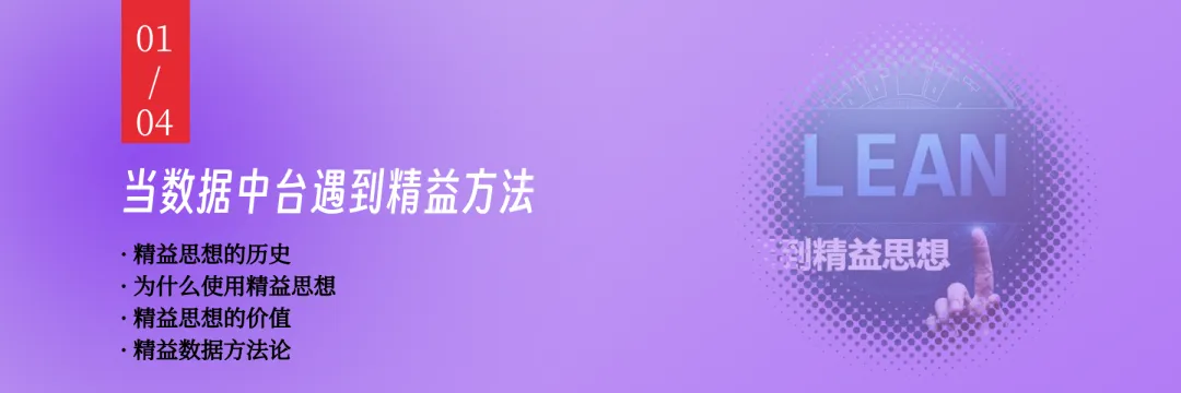 精益数据方法,将精益思想深度融合到企业数字化转型领域,以创造价值,消除浪费为目标,打造高质量发展的数字化企业,助力企业在新的数字化时代获得高响应力,建立数据驱动的企业。”