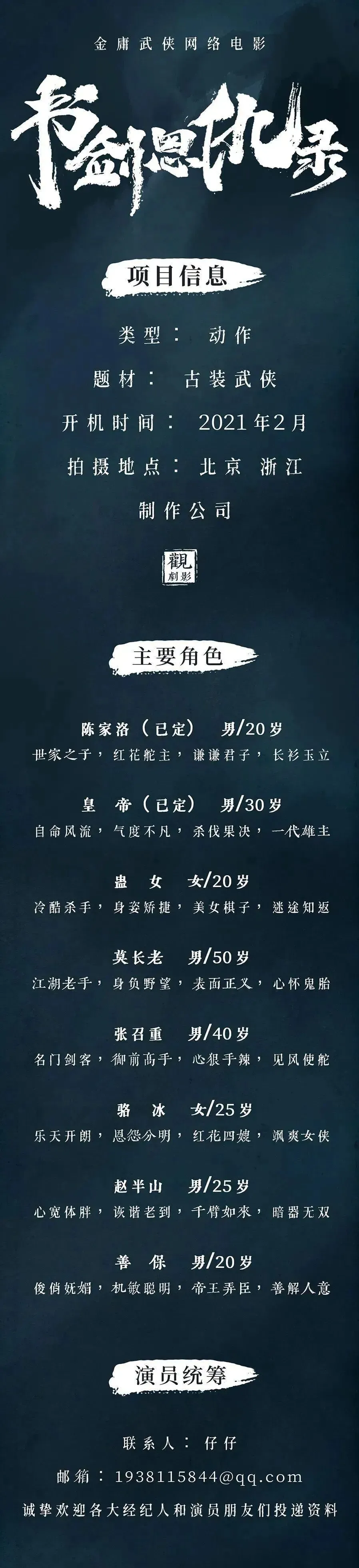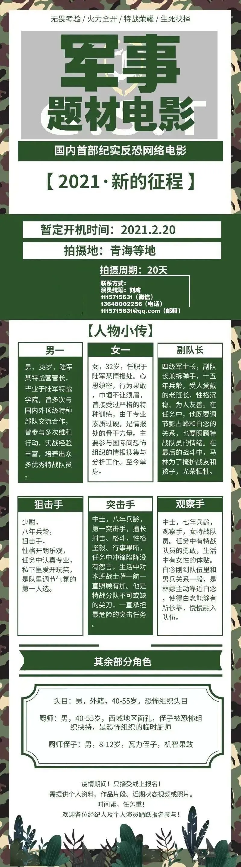 2021/02/03剧组招募精选,音乐短剧,军事题材电影,古装武侠等你来~