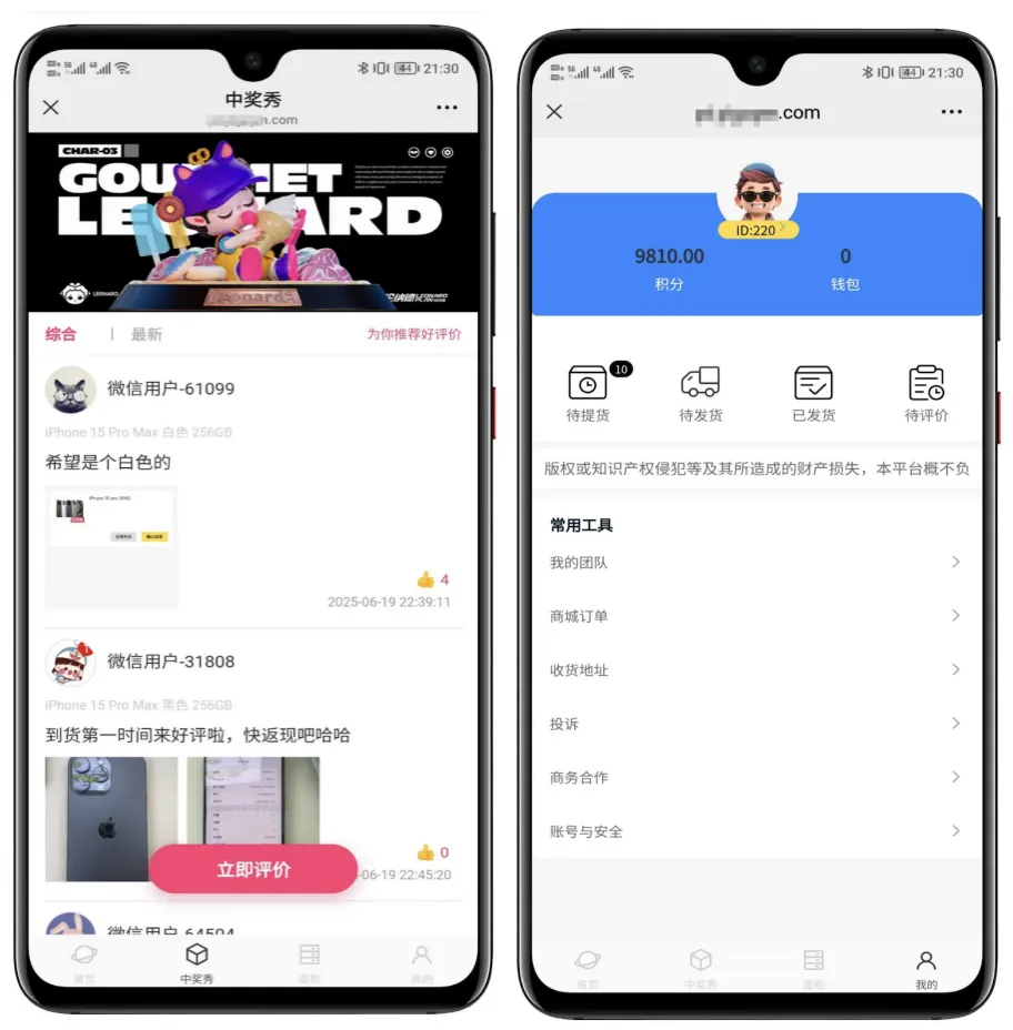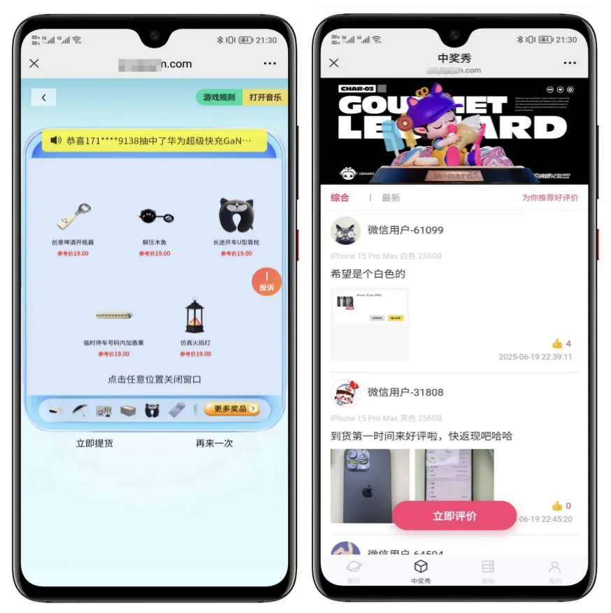 5. 社交化“中奖秀”与评价系统