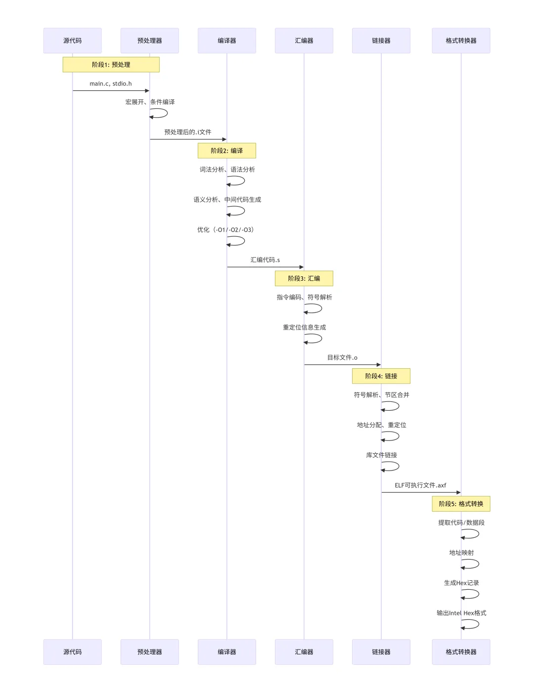 为了更清晰地理解各个工具如何协同工作,下图展示了编译过程中数据的流动顺序和每个阶段的输入输出关系: