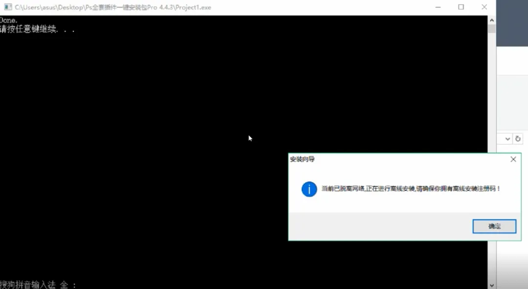 这套插件目前支持cs6-2020,兼容性非常完美,安装上也非常简单。首先关闭所有杀毒软件,然后打开点我安装这个文件,按任意键继续,显示离线安装,点击确定即可。