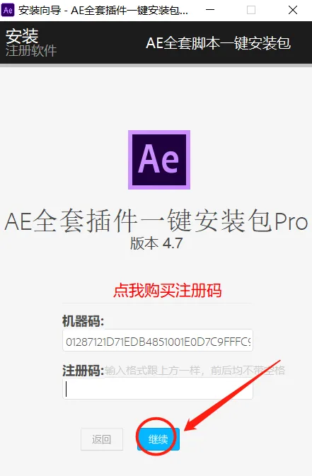 选择并确定好之后,下面的界面忽视注册码直接点击继续即可。由于作者已开放给大家,是不需要注册码的,为此非常感谢这位作者。